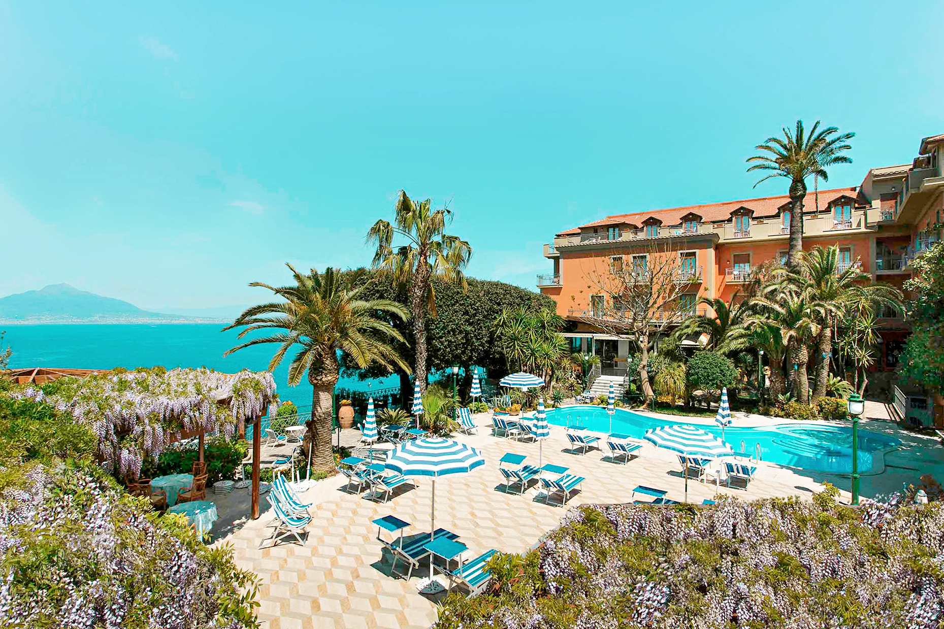 Grand Hotel Ambasciatori behoort tot de absolute tophotels in Sorrento met een unieke ligging op een klif met adembenemend zicht over de baai van Sorrento. Dit boetiekhotel met slechts 82 kamers wordt gekenmerkt door de uitstekende service, gastvrijheid en oog voor detail in een uiterst elegant en klassiek kader. Het hotel werd vorig jaar gerenoveerd en vormt het ideale adres als u op zoek bent naar rust en privacy en dit alles op een uiterst centrale en unieke locatie.