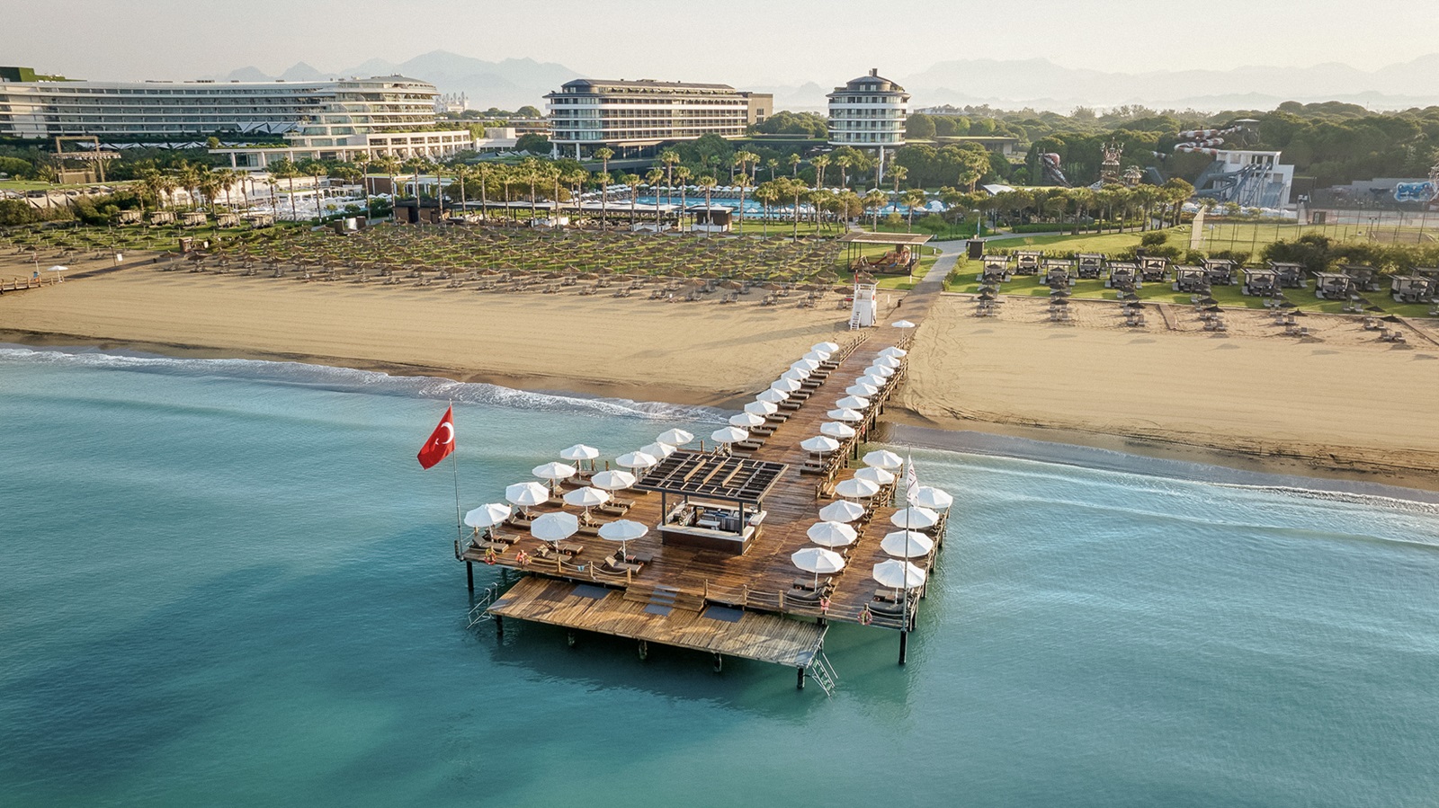Dit prachtige luxeresort met een uitgebreide all inclusive-formule ligt direct aan het zandstrand van Belek. Het is een feest voor wie van water houdt: er zijn vier buitenzwembaden en een binnenzwembad, en het neusje van de zalm is het aquapark met glijbanen. Ook kids vervelen zich geen moment, dankzij de kinderclub, animatie en een apart kinderbad. De hele familie slaapt samen in ruime, erg trendy ingerichte kamers, waar zilveren accenten perfect passen bij het designmeubilair. Speciaal voor gezinnen zijn er ook een speciaal familierestaurant met terras en acht à-la-carterestaurants. Weer op krachten komen kan in het stoombad of de sauna.