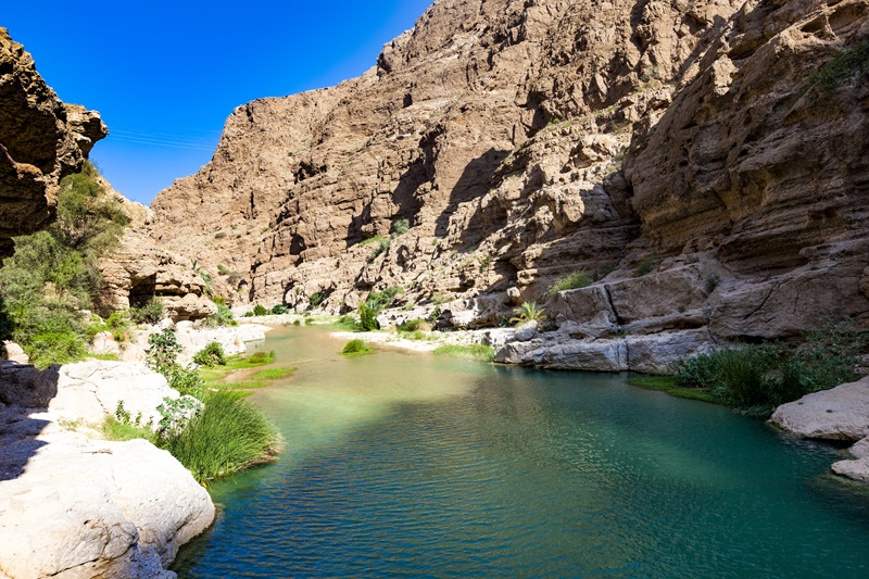 Als Oman om een ding bekend is, dan wel om de ontelbare wadi’s: rivierdalen die in droge gebieden voor een plotse oase van groen zorgen. Een van de mooiste van dergelijke natuurfenomenen is Wadi Shab, op minder dan twee uur rijden van de hoofdstad Muscat. Het is een aaneenschakeling van turquoise waterpartijen, watervallen en terrasvormige plantages middenin de woestijn.