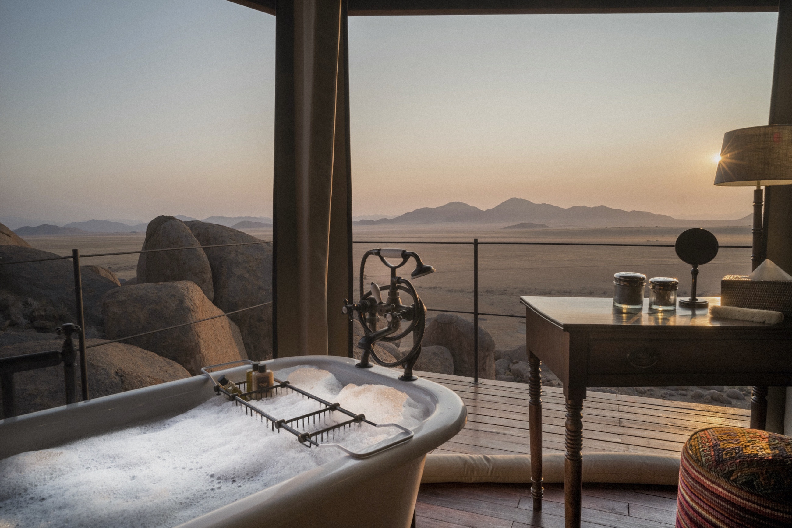 Vandaag reist u naar het schitterende Namaqualand dat zich uitstrekt van de Atlantische Oceaan aan de westkust, tot het kleine stadje Pofadder in het oosten, de Oranje rivier in het noorden en Garies in het zuiden. In het voorjaar (augustus/september) wordt het dorre landschap omgetoverd in een spectaculaire kleurrijke bloemenzee wanneer de ontelbare margrieten en Fynbos planten openbloeien in de zon. Bezoek ook de Goegap Nature Reserve, met haar granieten rotsen en zanderige vlaktes en die gedomineerd wordt door de Carolusberg, de hoogste top in de streek. Interessant ook, is het Richtersveld National Park, leefgebied van de reebokantilope, duiker, steenbok, klipspringer, kudu, Hartmans bergzebra baviaan, vervet aap, caracal, luipaard en 650 verschillende plantensoorten. Uw romantische verblijfplaats wordt omringd door de unieke Namaqua vegetatie en biedt uitzicht op het spectaculaire berglandschap.