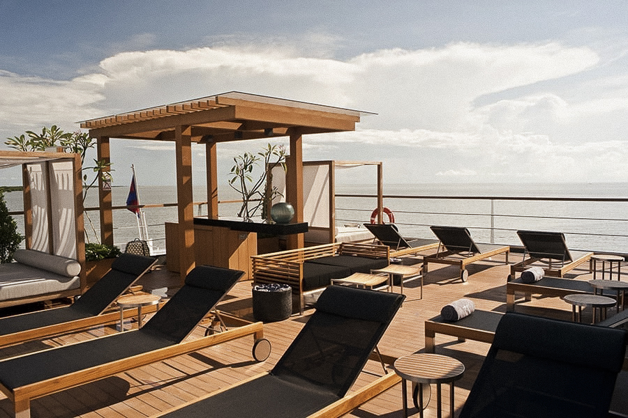 Op de terugweg maakt u een korte tussenstop bij de bruisende ochtendmarkt. Daarna verkent u Long Khanh island per fiets of u gaat samen met de chef-kok op zoek naar verse ingrediënten voor een heerlijke maaltijd op de Tan Chau markt (kookworkshop, facultatief – niet inbegrepen in de prijs). Geniet na de lunch van ontspanning op het zonnedek bij het zwembad of boek een traditionele Khmer massage in de spa. Heeft u zich opgegeven voor de kookworkshop? Dan kunt u zich uitleven in de keuken en lokale gerechten bereiden, terwijl u al varend de grens met Cambodja bereikt.