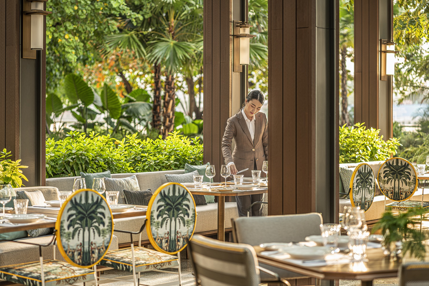 4 à-la-carterestaurants: Yu Ting Yuan (authentieke Kantonese keuken), RIVA del Fiume (Italiaanse keuken), Brasserie Palmier (Franse keuken), Lobby Lounge (internationaal en Thai comfort food)